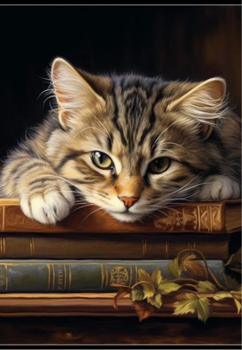 Cute Cat Laying on Vintage Books Greeting Card