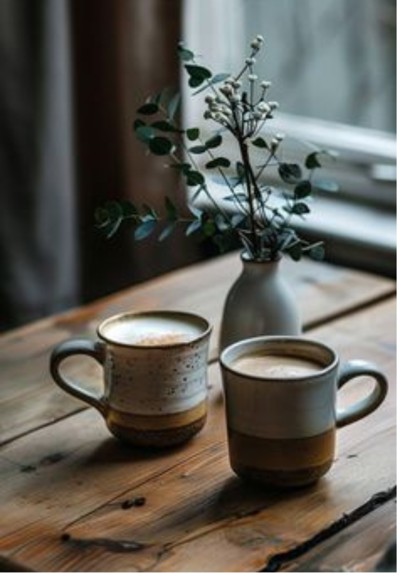 Two Coffee Cups on a Rustic Wooden Table Greeting Card